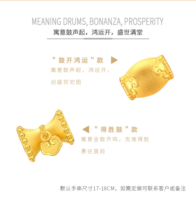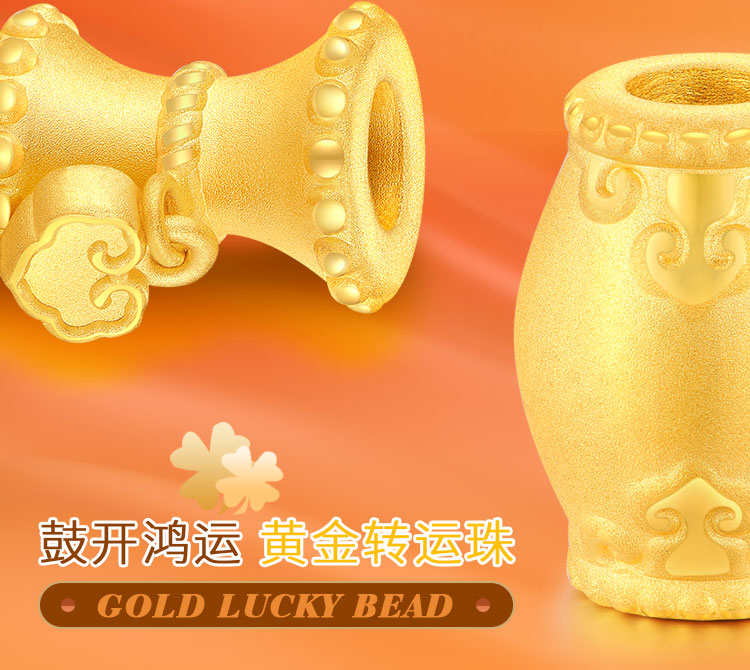 黃金轉(zhuǎn)運珠佩戴時,隨著肢體動作不停轉(zhuǎn)動,寓意為佩戴者時時轉(zhuǎn)運,使這好運隨身。