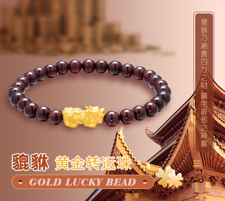 黃金轉運珠佩戴時,隨著肢體動作不停轉動,寓意為佩戴者時時轉運,使這好運隨身。